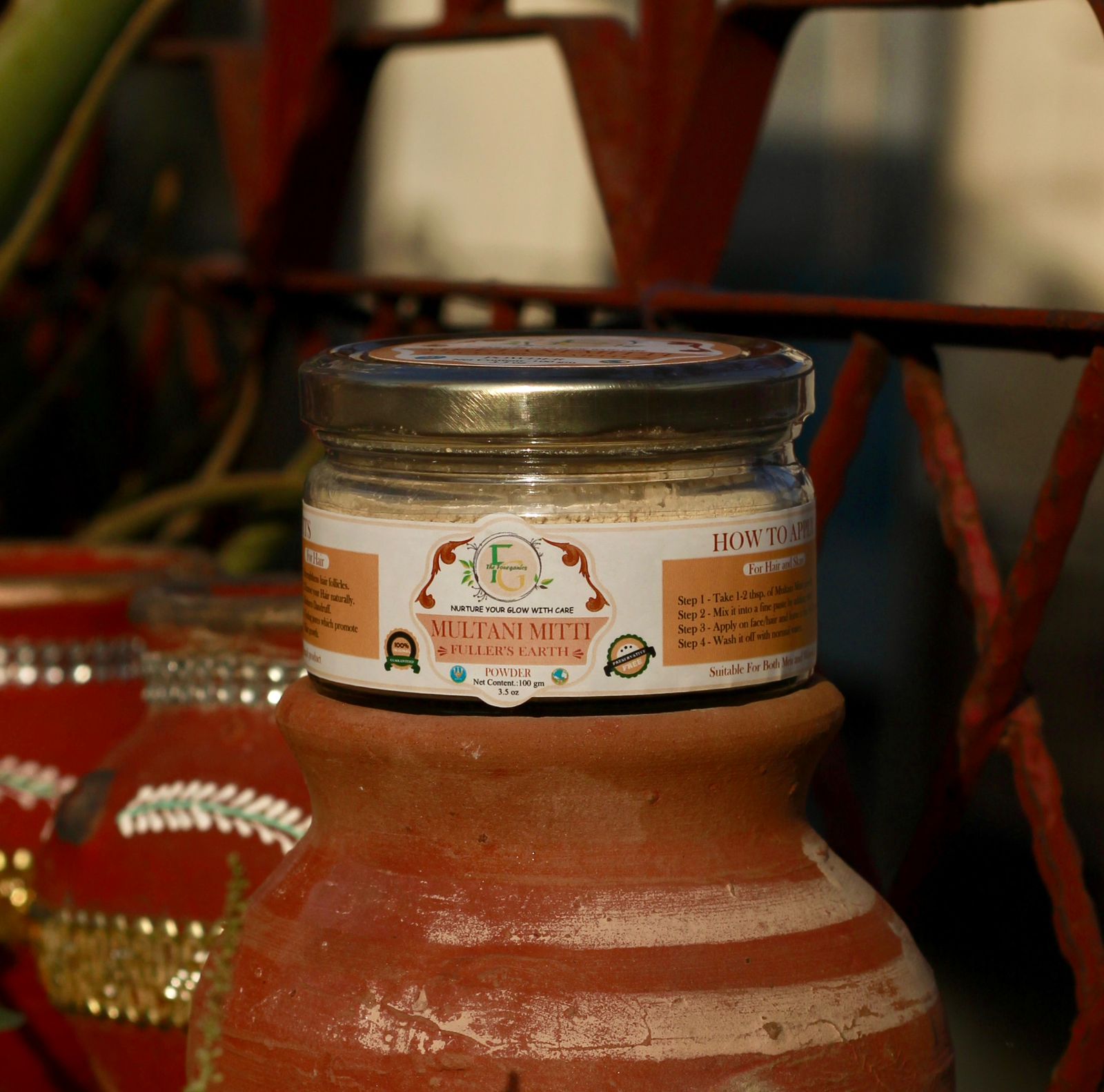 Thefourganics Pure Multani Mitti Powder (Glass Jars) – Twin Pack (100g x 2)